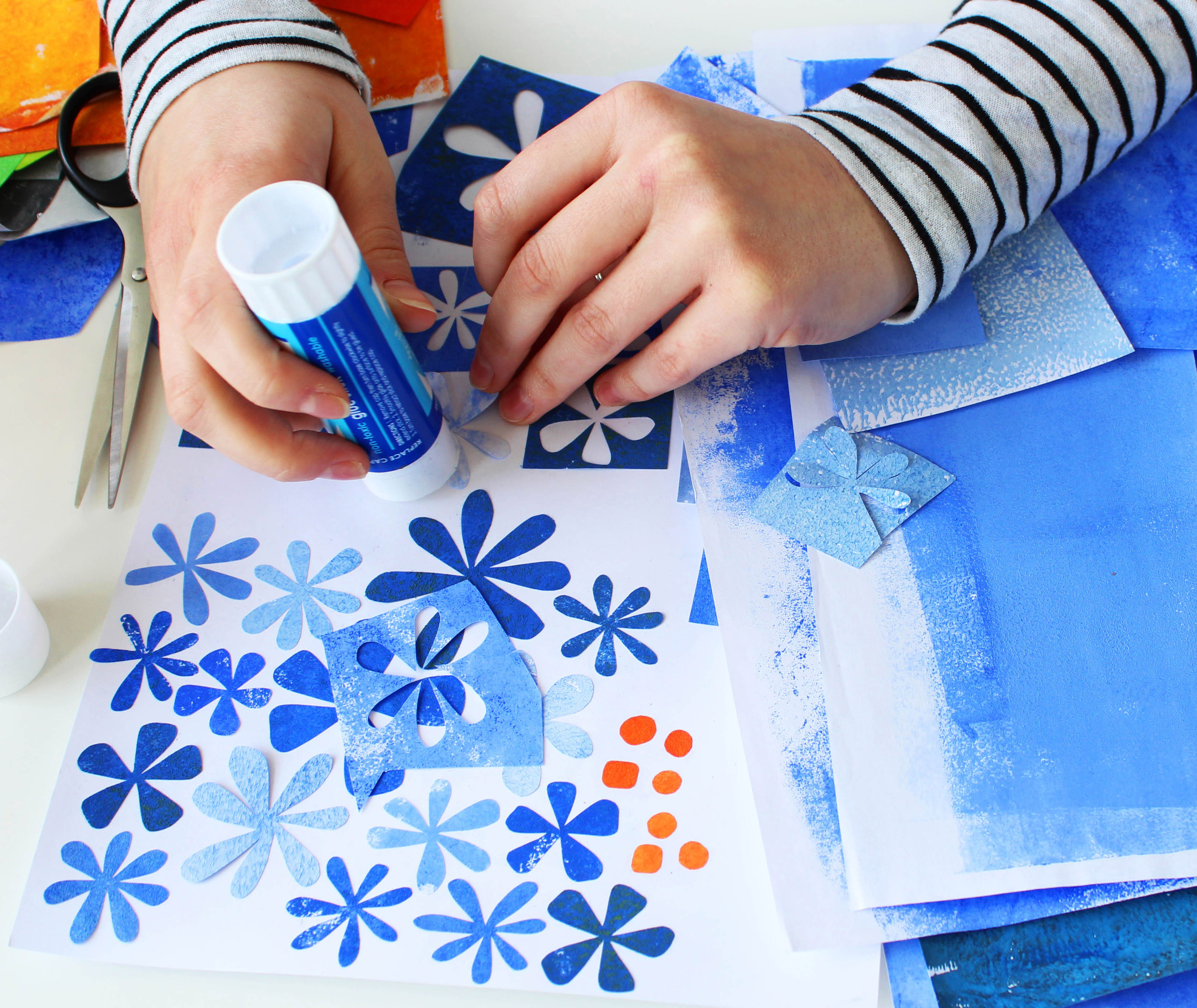 The process of my collage’s creation is unique, combining my love of printmaking with clean collage cut by hand in my Bristol studio.